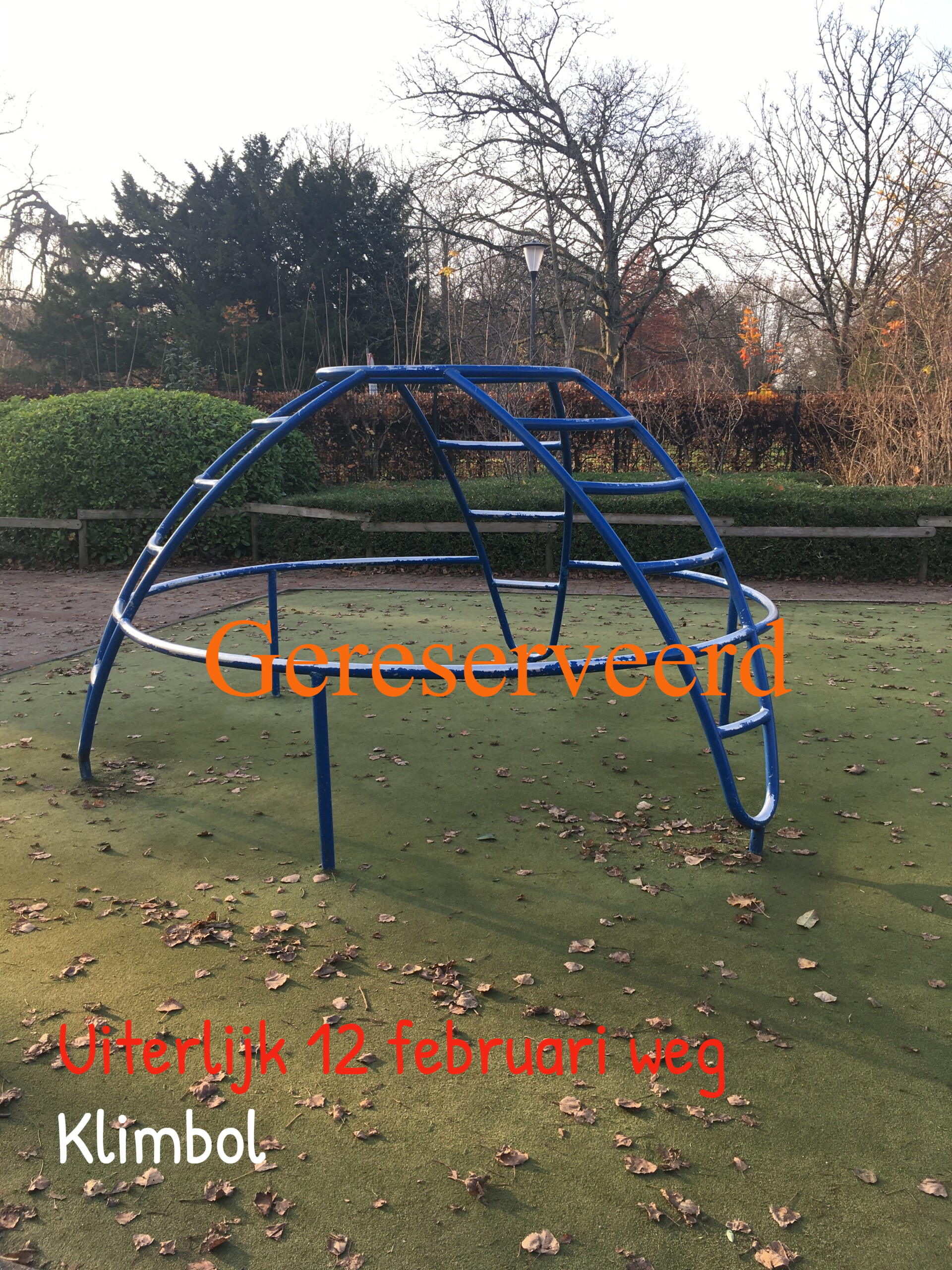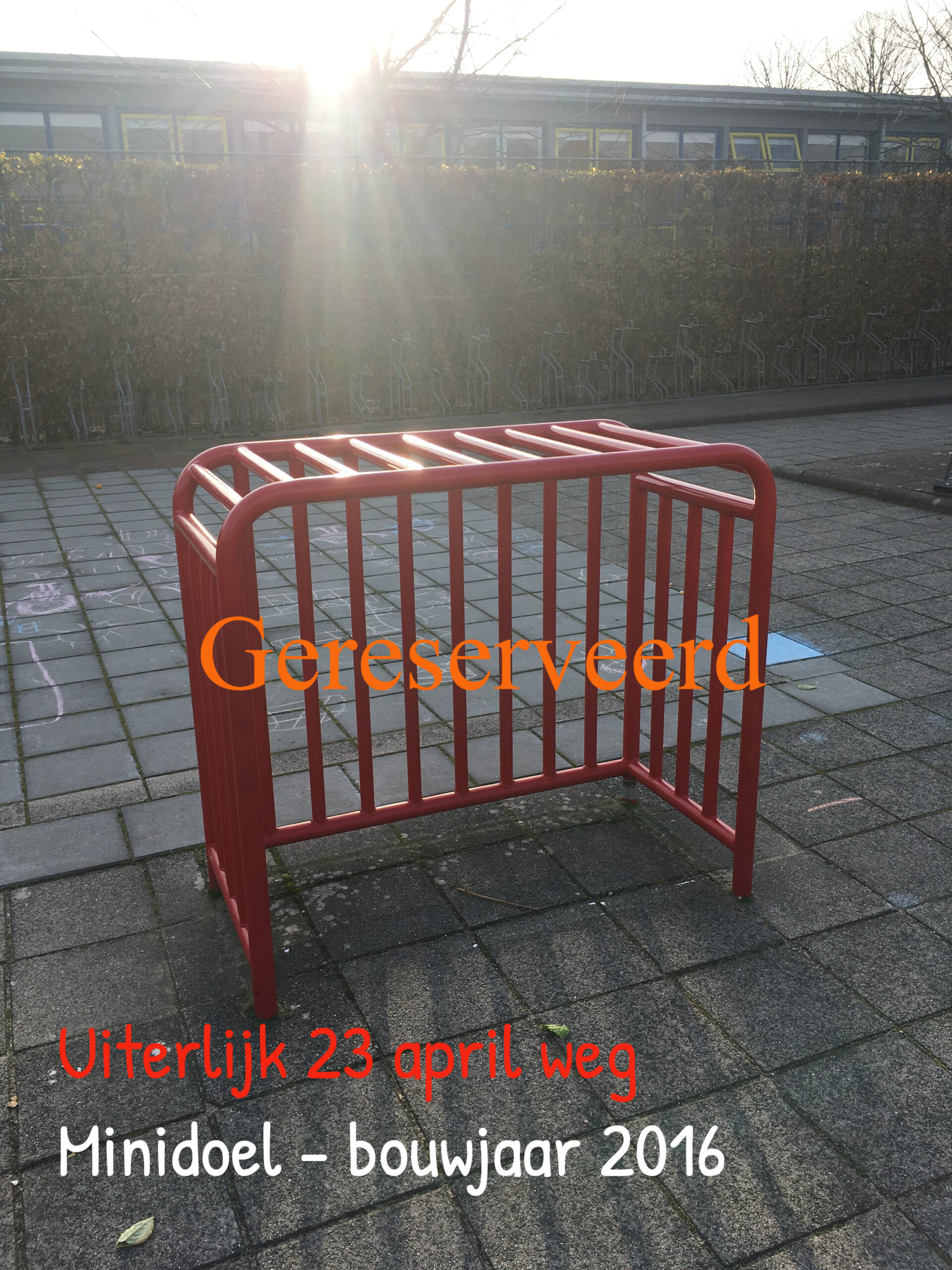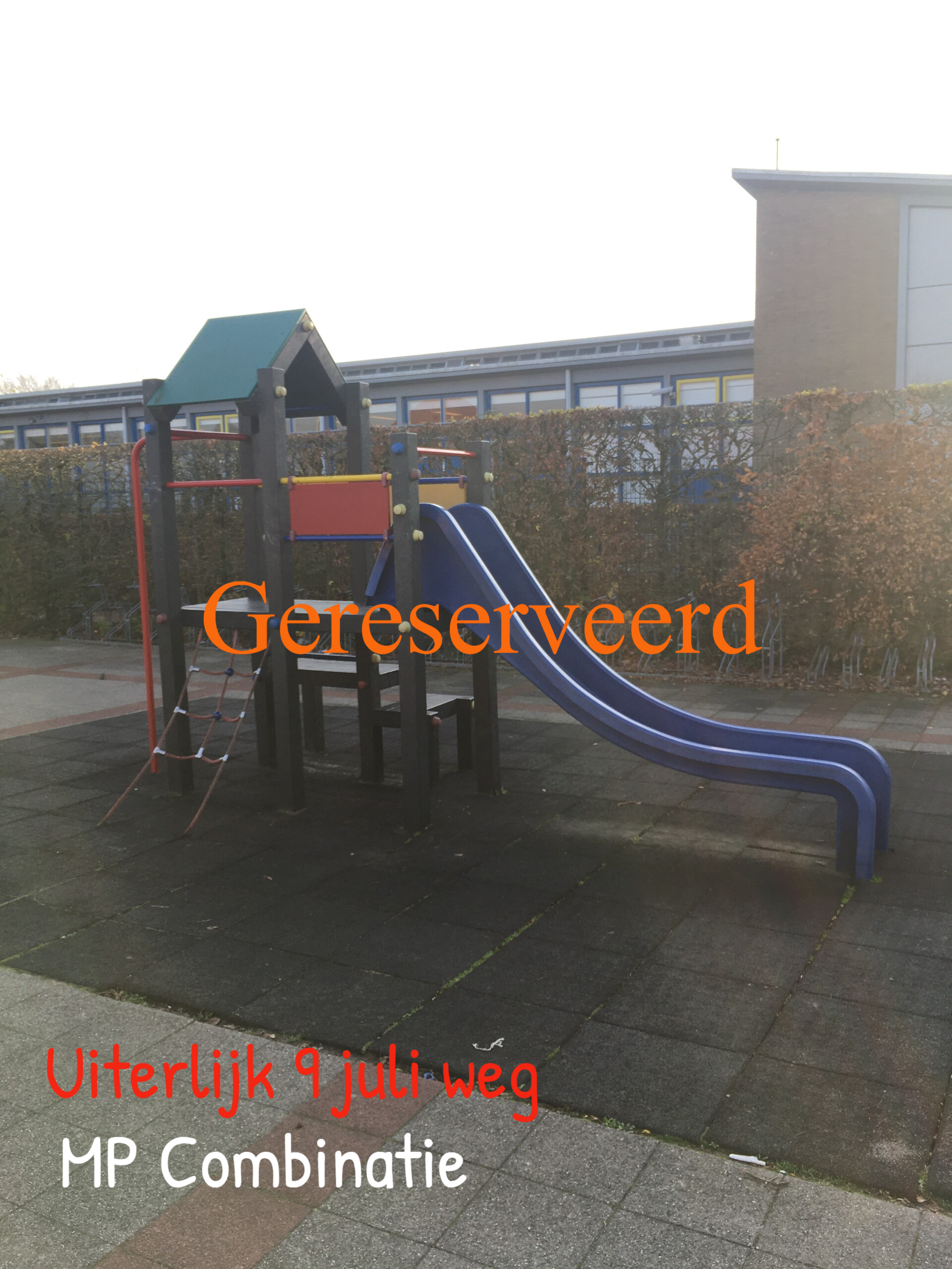 De meeste van de huidige speeltoestellen krijgen geen plaats in het nieuwe plan. Dit kan een mooie kans voor u zijn om tegen een aantrekkelijke prijs één of meerder speeltoestellen over te nemen. Heeft u een plekje in uw tuin?